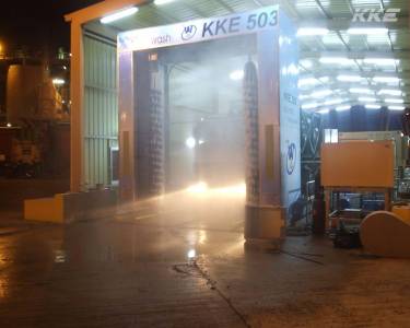 KKE 503 ist ein automatisches LKW-Waschsystem mit Hochdrucktechnologie. Hochdruck-LKW-Waschanlagen eignen sich für Flotten, bei denen die Formen unregelmäßig sind und die Bürsten die zu reinigenden Stellen nicht erreichen können.