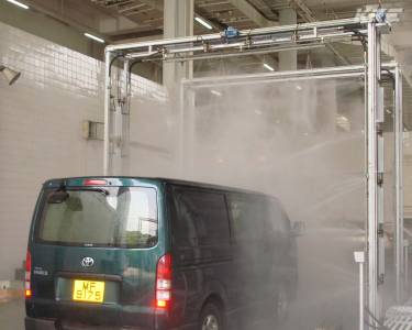 Drive through systems are stationary systems which are fixed on the floor of the Truck / Bus wash bay. The Bus / truck is driven slowly inside the bay. The equipment senses the presence of the vehicle and the arches start one by one as the vehicle approaches the arch.